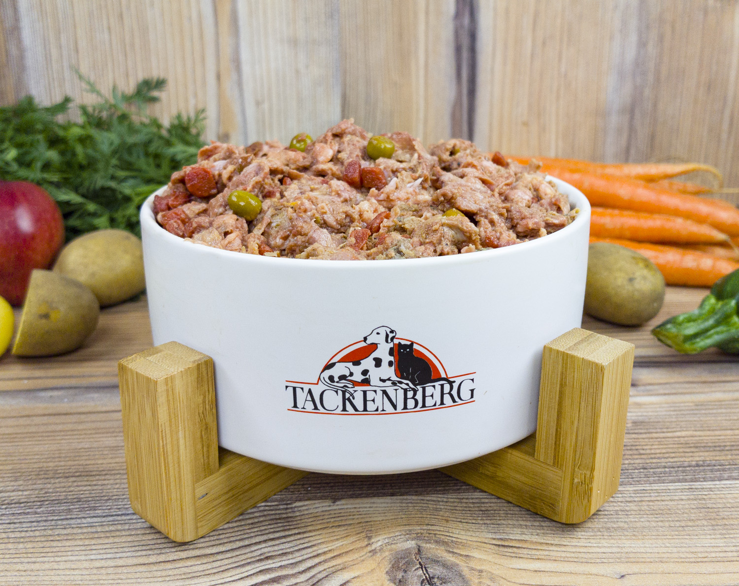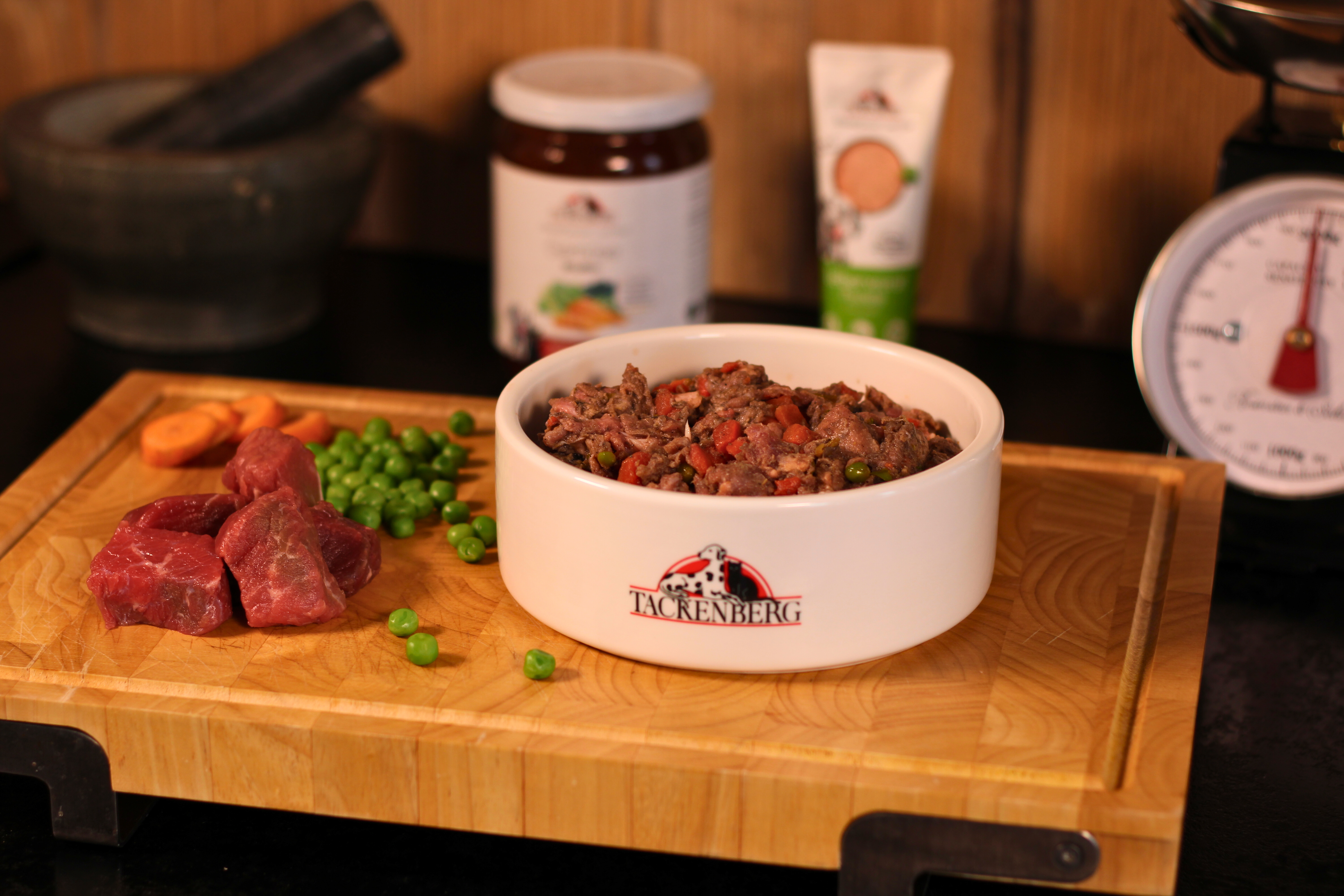 Unser vollwertiges Rohfleisch-Menü mit blanchiertem Feldgemüse ist ein gesunder Hochgenuss für deinen Vierbeiner! Unsere feine TACKENBERG Rezeptur enthält nur die leckersten Stücke vom Rind und kombiniert sie mit frischem Gemüse zu einem nahrhaften Menü: