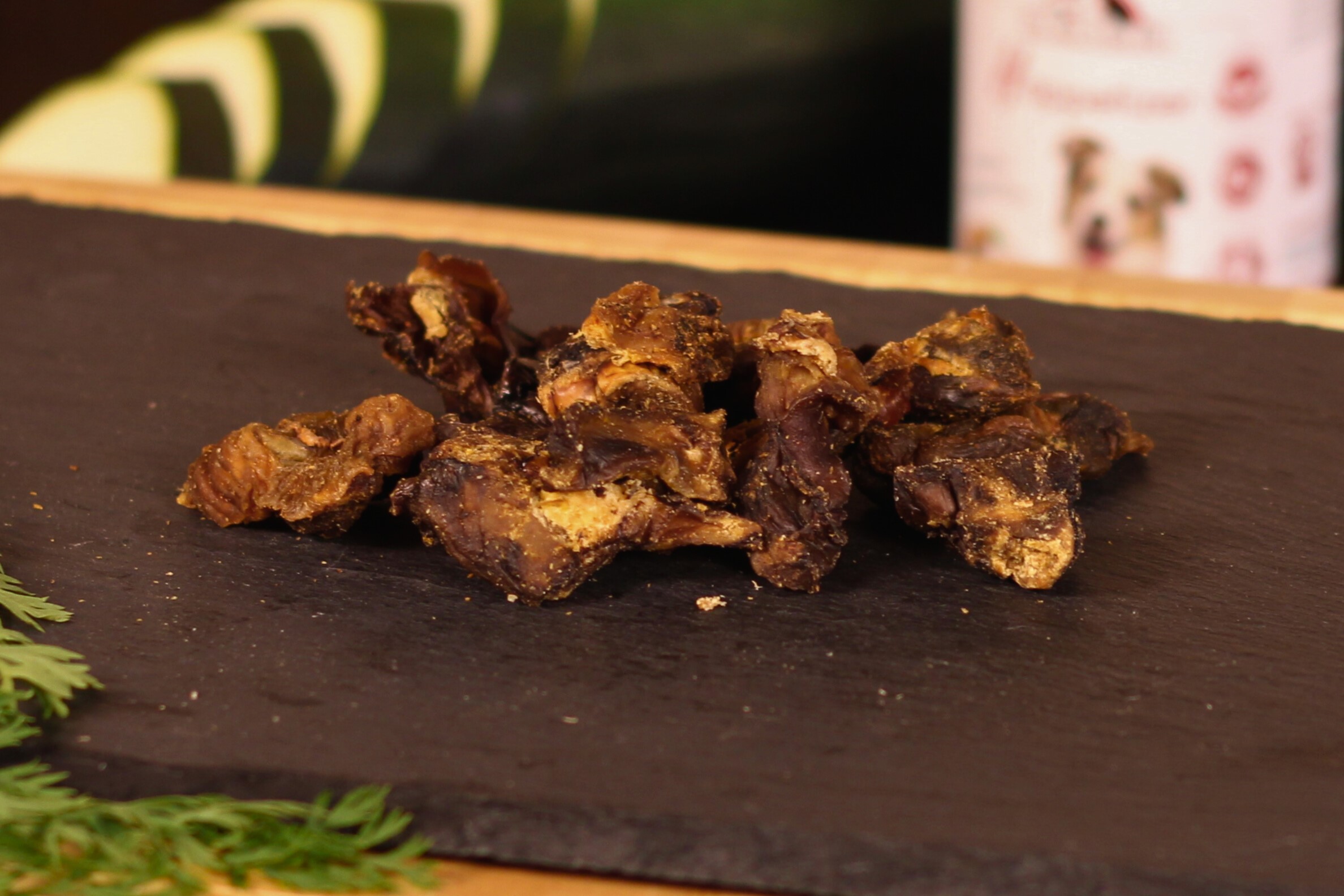 Innereien sind nicht nur in roher Form für Hunde und Katzen unwiderstehlich, wie die getrockneten Hühnermägen beweisen. Im Gegensatz zum Rohfleisch sind sie herrlich knusprig und bieten deinem Vierbeiner somit ein geschmacklich exquisites Kauvergnügen.