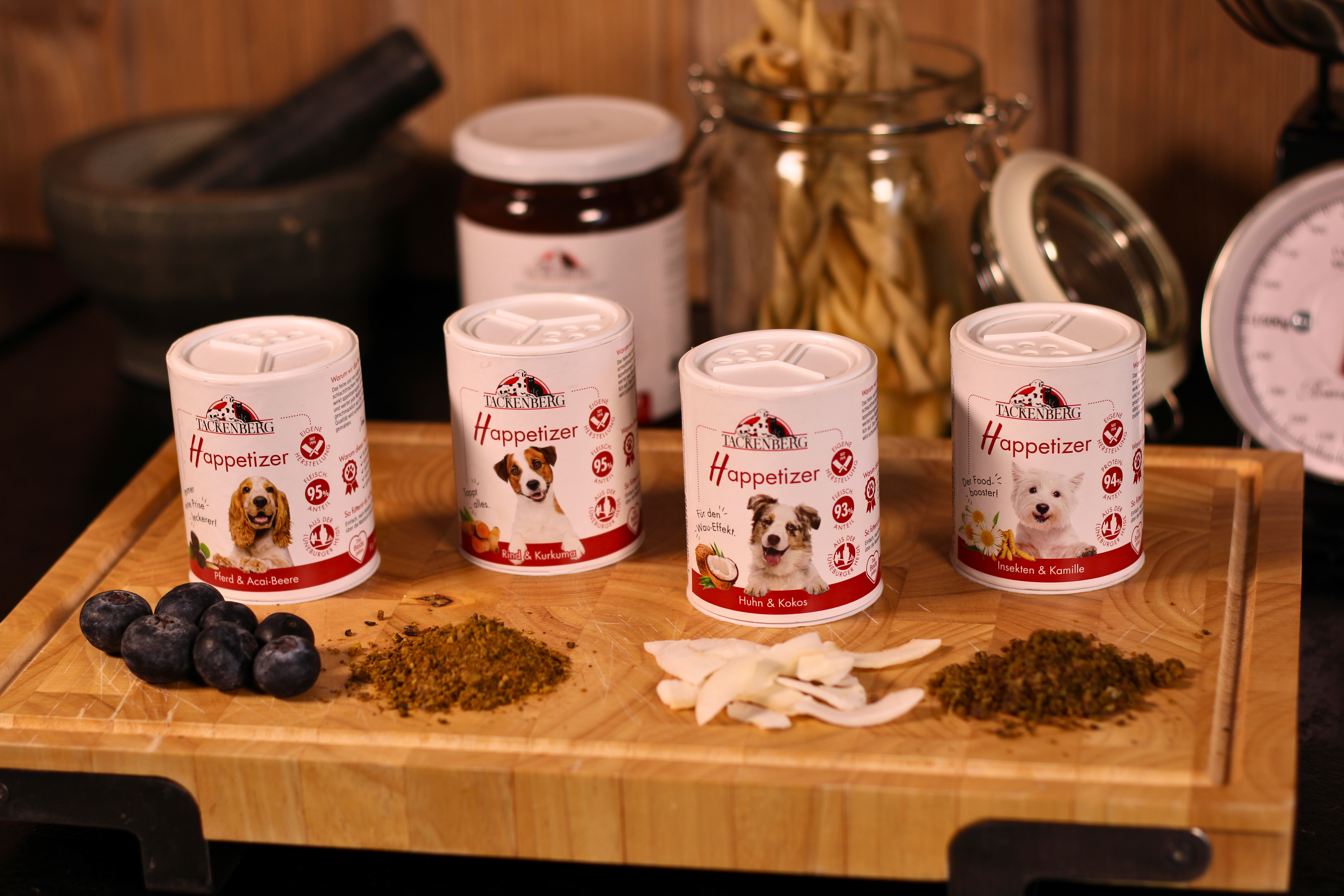 In Premium Qualität überzeugt der TACKENBERG Appetizer vom Pferd als geschmackvolle Nahrungsergänzung auch allergische Hunde und Katzen.