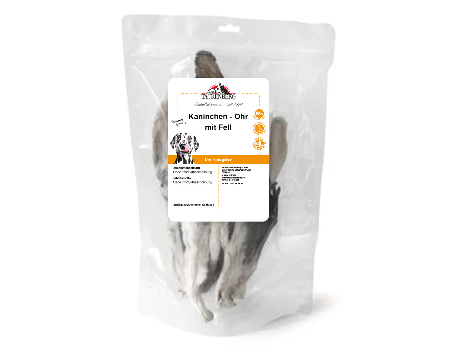 Diese Kaninchenohren werden heiß geliebt! Schön viel Fell und lecker knackig. Sie sind gut geeignet für größere Hunde.
