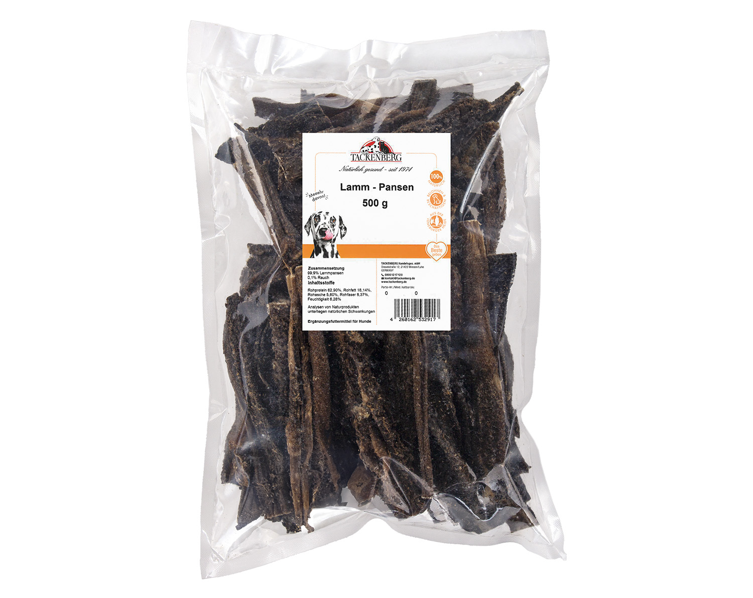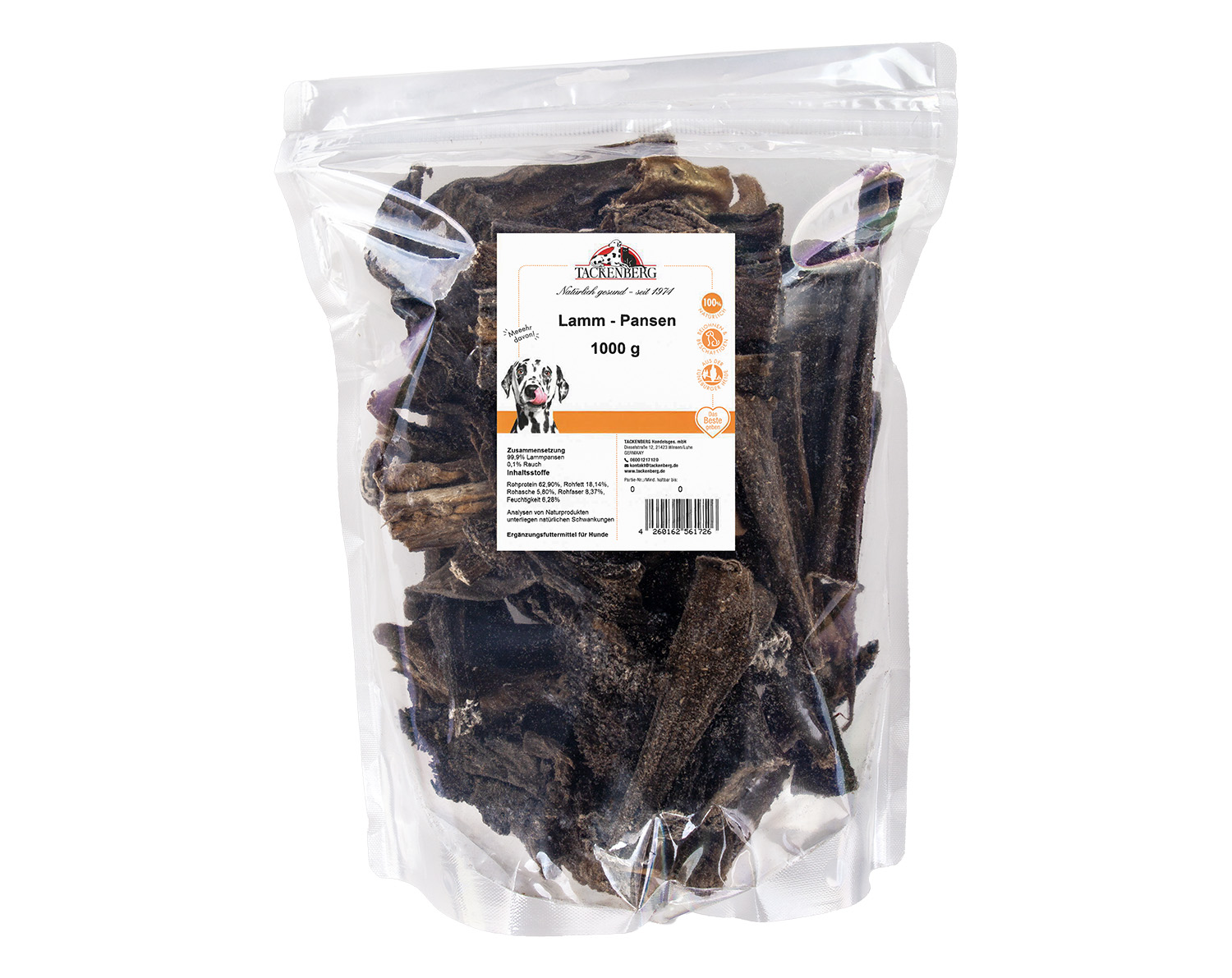 Kauen, Knabbern, Knuspern - Hunde lieben es, ihr Gebiss einzusetzen und dabei herrlichen Geschmack zu genießen. Der Trockenpansen vom Lamm wird deinem Vierbeiner deshalb große kulinarische Freude bereiten, denn er stillt den Kautrieb ebenso wie den kleinen Hunger.