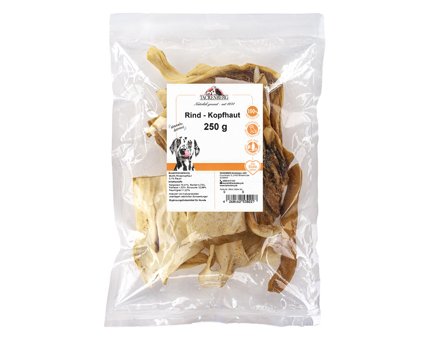 - Knusprige schonend getrocknete Rinderkopfhaut