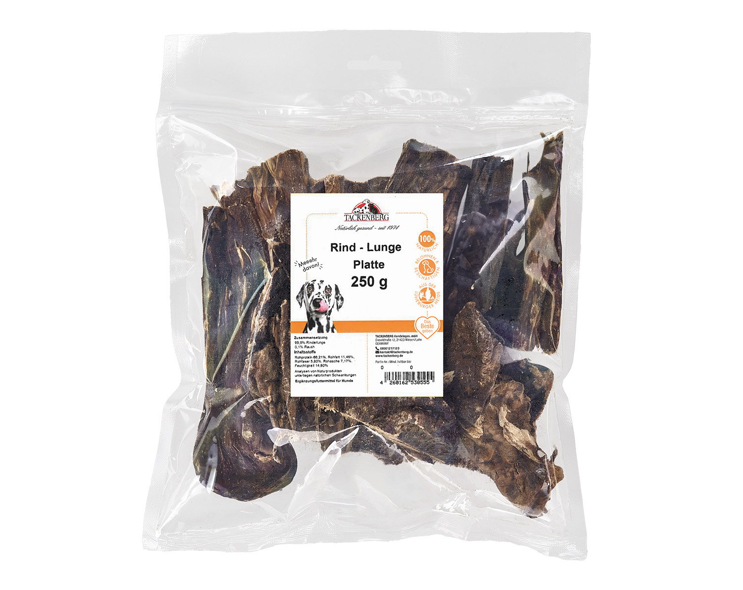 Die getrocknete Rinderlunge ist sehr leicht und voluminös, was sie im Vergleich zu Trockenfleisch zu einem großzügigen Snack macht. Dank ihrer nachgiebigen und weichen Konsistenz kann sie von kleinen Hunden, Katzen, Welpen und Senioren mühelos gekaut werden. Aufgrund ihres geringen Fettgehalts ist die Lunge auch für Vierbeiner mit sensibler Verdauung bestens geeignet. Verwöhne deinen Hund oder deine Katze mit einem unbeschwerten Kauvergnügen - mit der getrockneten Rinderlunge von TACKENBERG!